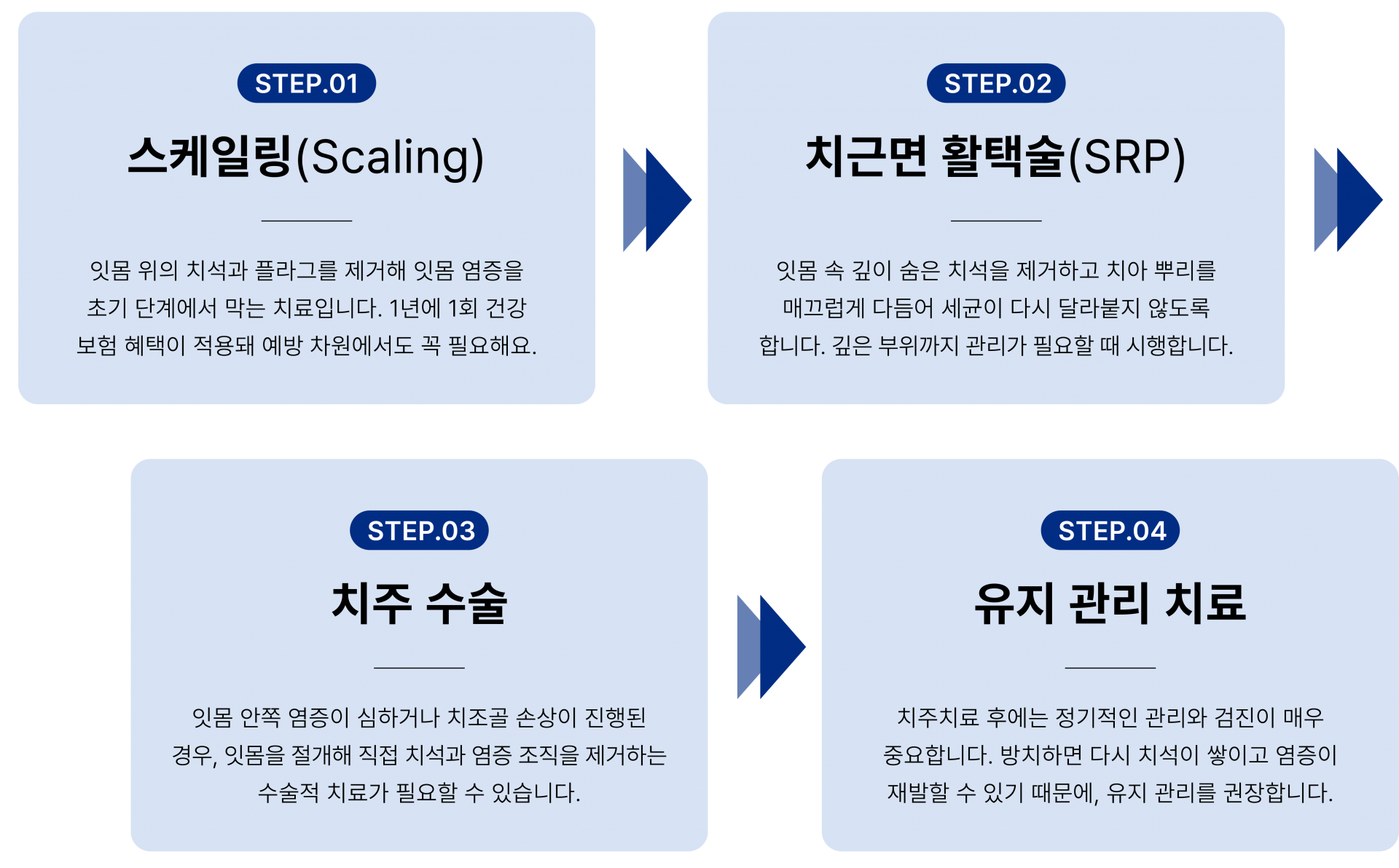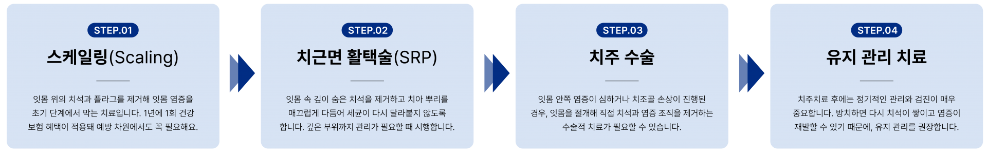 3. 치료 이후 정기적인 유지·관리 프로그램 | 치료 후에도 정기적인 유지·관리 프로그램으로 건강한 치주 상태를 지속합니다 |